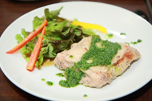 やわらかい鳥肉に辛味の緑のソースがおいしいです。