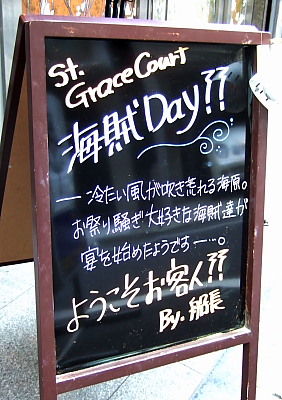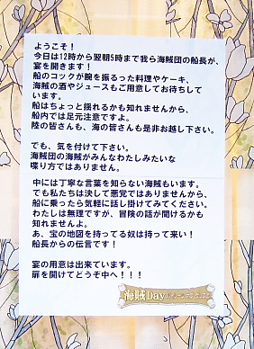 遅番キッチンの帝さんが黒一色の海賊服ででてきましたが、