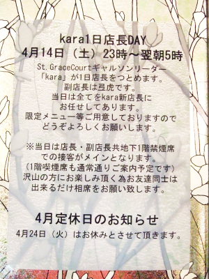 (karaさんは以前に副店長からバツゲーム指令でフロアに出ましたけどね)