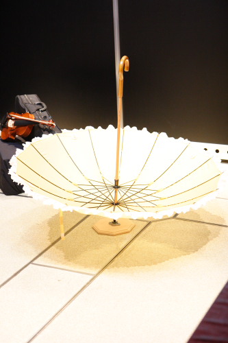 傘を回してバイオリンがバッジの所をさせばあたり。
