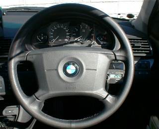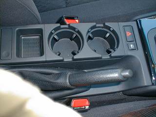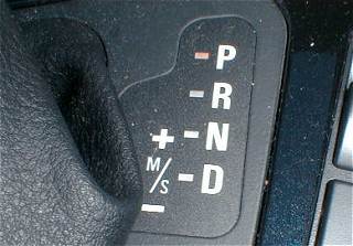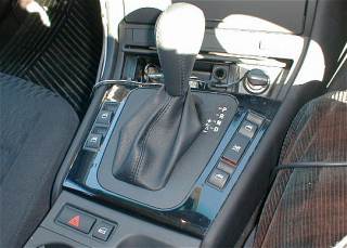 | 5速のATです。レバーの左右には4つの窓のパワーウィンドウがついています。このパワーウィンドウは上昇・下降のいずれもワンタッチ機能付きです。後ろにハザードスイッチがありますが,この位置はとても使いにくいです。 | ステップトロニクとBMWではいっていますが,マニュアル機構の付いた5ATです。Dレンジからレバーを左に倒すとスポーツモードになります。この位置から前に倒すと1段ギアがアップ,後ろに倒すとギアが1段ダウンします。これでマニュアル走行ができます。 |