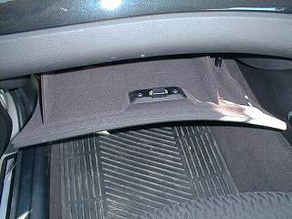 | 右の空調吹き出し口下のスイッチです。左の丸いのがヘッドライトのスイッチです。右上の左はメーターの照度コントロールスイッチ,右はヘッドライトの光軸調整スイッチです。下の左はフロントフォッグランプスイッチ,右がリアフォッグランプスイッチです。 | 左のスイッチしたに小物入れがあります。それなりの大きさがあるので便利です。しかしランプがついていないので,夜間は使いにくいです。 |