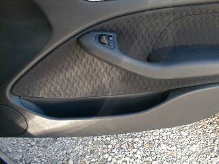| フロントのドアにはポケットが付いています。これも見かけより沢山は入ります。 | 運転席ドアには可倒式のドアミラースイッチがついています。 |