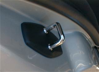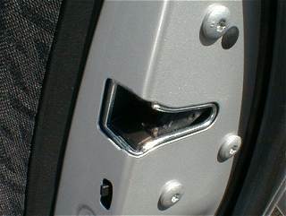 | ドアのノブの車体側です。ベンツもそうでしたががっちりしたものです。 | ドアの方のノブの入る部分です。このようなところの構造は日本車も学ぶべきだと思います。 |