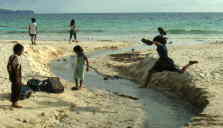 ○マクタン島 セブに来る外国人観光客の75%は日本人。そのほとんどはマクタン島の高級リゾートに滞在。 マクタン島とセブ島をつなぐ橋(写真)や空港ターミナルは観光振興のために日本のODA資金 で作られています。また珊瑚減少の原因の一つは地元漁民のダイナマイト漁。禁止されている ものの、時折ダイナマイトの爆音が。 ○ボラカイ島 ボラカイ島は白人バックパッカーが長期滞在する穴場であったのが、ホワイトビーチの素晴らしさ が口コミで伝わりメジャー化。また、日本人観光客が増えてから、シーズンには日本人からお金 を巻き上げようとする不良フィリピン人が全国から集まってきていましたが、ビーチの要所に警察 官の詰め所が設置され、不良フィリピン人の姿は減少。物売りやセーリングなどの勧誘は多いも のの、客引き規制が実施されたためか、あまりしつこくありません。定番のホワイトビーチは人が 溢れるようになって魅力も半減。海の輝きも薄れた感じ。ボートステーション1から北側に歩いて いくと、観光客も少なく景色もきれい。 また東部海岸には煌く海が健在。ボラカイ本来の海を満喫 するなら東海岸がお奨め。 ![]() ![]()