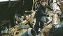 16.54 Scene of Betsey and Boney being rescued in the storm BENSON: And it's night. I mean this is a combination of these rowing boats which is a tank here at Pinewood with wind machines and wave machines creating a storm. And the Hotspur is on the famous set on the airport to the west of London. GRIEVE: And the motion of the ship is done by moving the camera up and down, not moving the set. One way of making motion is to move the set, putting them on gimbales and move it, but it's very noisy and very expensive, so we came up with this alternative of just having the camera go up and down. But in order to do a storm sequence, you really have to move the camera up and down violently. It's going about 6 foot, which is not very good for the back of the camera operator. But I think it's really effective. BENSON: But we've been very lucky, haven't we Andrew, that we've had 8 films with superb camera operators. GRIEVE: We have. BENSON: Steve and Paul who, if they are not fit at the beginning of the film, they damn well are by the end of it. GRIEVE: I think they are both fit guys, and they need to be with the amount of physical work they have to do. It's quite difficult anyway, even on the real ships, just trying to keep your balance with the camera, let alone having it go up and down as well. |