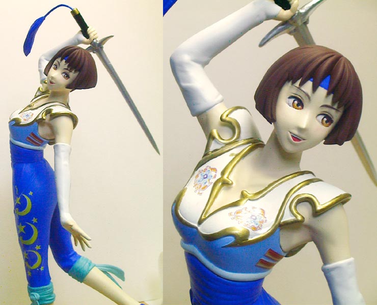 何か「シャンファ」にしてはポーズがおとなしすぎる、ってので右足をうごかしました。浮いてます。左足一本で立ってるワケですね。あと腰の位置や胸の大きさを調節しました。