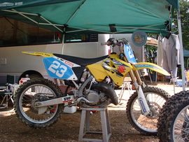重量級なビジュアル系? たまにバイクが小さく見えます 今年もLMX#1鈴木沙耶選手のピットクルーを務めています 得意技は 「ウルトラ トラクション走法」 「地を這う様なウープス」 |