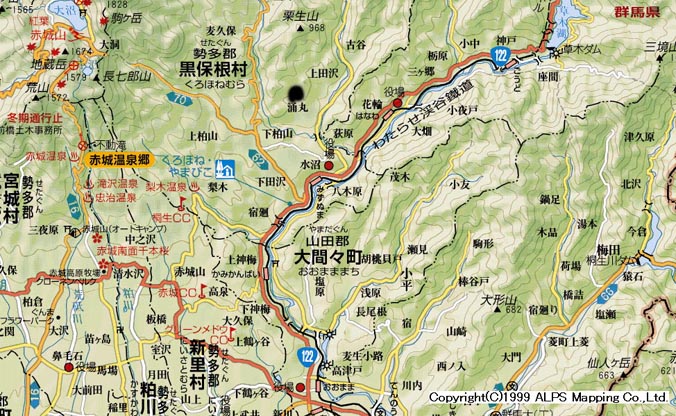横断歩道の所に「赤城モトクロスランド」の看板が出ています。 |
