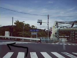 正面の橋を渡らずに、左に曲がりましょう。 |