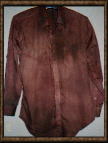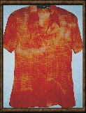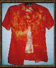 | 着なくなった紳士用カッターシャツを茶に染めておしゃれにリメイク | 着なくなった紳士用カッターシャツをブルーに染めておしゃれにリメイク | グリーンに模様染めした上からワインカラーで2度染め |
