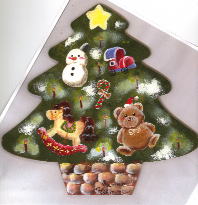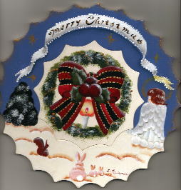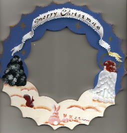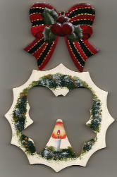 | クリスマスオーナメント 台付き (総てヒモをつけています) ¥1,500 幅20cm・高さ13cm |