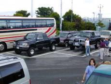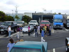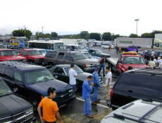 オイラ達は、横浜町田インターから東名高速に乗り海老名SAを目指す。。。インター入り口で、「ふささん」と合流。。。海老名はもうすぐ。そこへ、白いラム。「かおるずん」だ。。。3台で海老名SAに到着。。。 ジャンジャジャーン。。。 海老名SAには入るといるいるいる! アメ車だいっぱい!!! 何だか、今日は、いつもとSAの雰囲気がちが〜う。。。海老名SAの中は広くてちょっとうろうろ。。。「えりかりん」から電話が・・・「そんなとこで何してんの?」いたいた。。。みんなを発見!!!オレカンメンバー結構来ている。。。なんかいいよね。仲間がいるって。 |