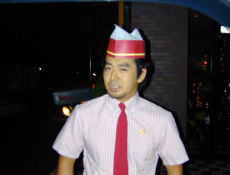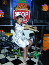 帰り際、YASU君が駆けつけてきた。って見たら、マックの店員仕様になっていた(笑) オイラ達が行った時間も早かったせいか、仮装してる人たちがいなかったのがすごく残念だった。あとで、聞いたらこのあと結構仮装メンバーが集結したんだってさ。仕事がなければ、晩くまで居れたんだけどね(笑) |