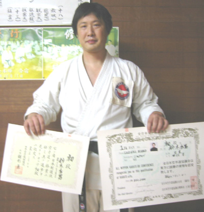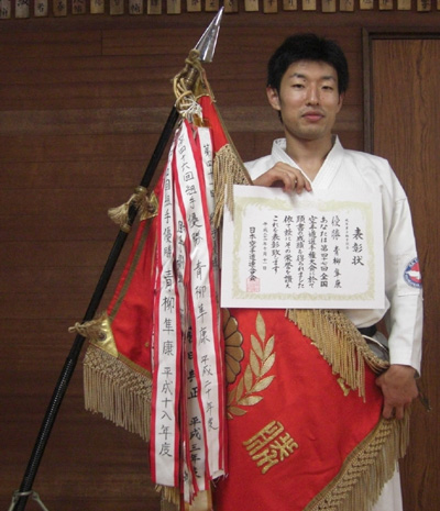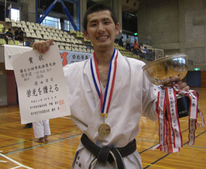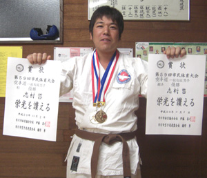 一般男子有級組手の部、形の部とも優勝した志村 哲選手!!