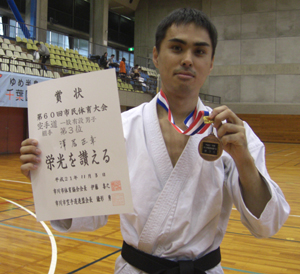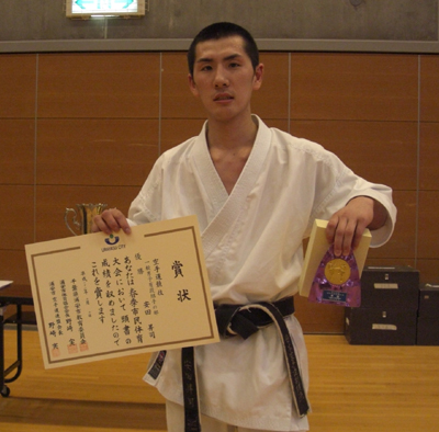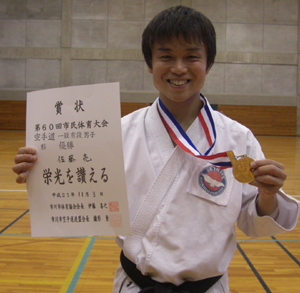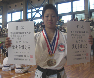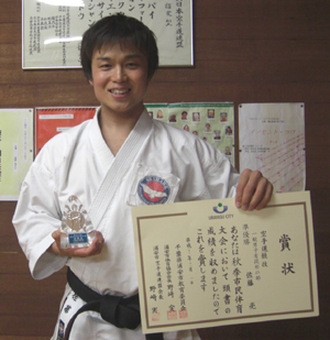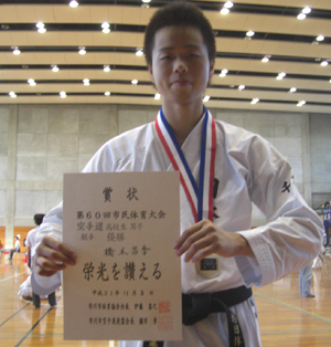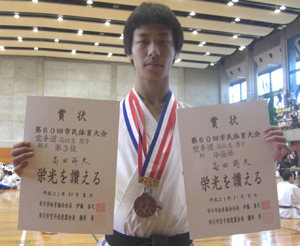 高校生男子形の部で準優勝、組手の部第3位の高田蒔夫選手!!