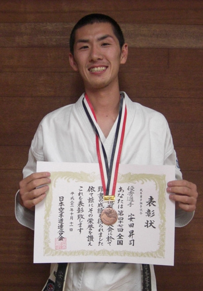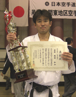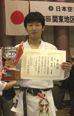 2010/0606/浦安市立総合体育館にて開催されました平成22年度浦安市民体育大会空手道競技に於いて一般男子有段組手の部で安田昇司選手が優勝、一般男子有段形の部で佐藤 亮選手が準優勝と大活躍でした。