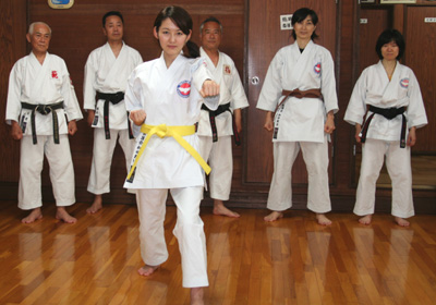 040407 制護会本部道場にて空手の修行をミス日本グランプリ!嵯峨百合子さんが本日より練習を開始されました。