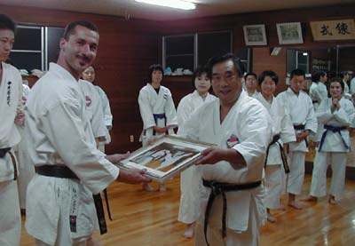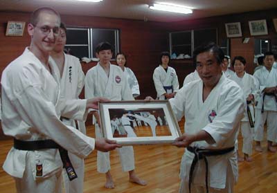 010601 練習終了後、鎌形 勇総師から記念の写真を贈られた両氏!!上段がゲルギオス ヴァシリュー先生、下段がジュゼッペ ザンゾーネ指導員、本国に帰られてからもご活躍を期待しております!! Auf wiedersehen!! お元気で!!