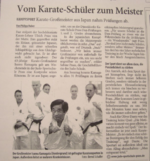 デュッセルドルフスポーツ学校にて、鎌形総師の特別セミナーが開催され多くの有段者の方々が受講されました。又、ドイツ3大ネットワークのテレビにも取材を受け放映され、新聞にも紹介されました。