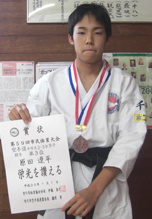 中学2・3年組手の部で第3位の原田遼平選手!!