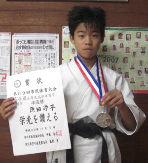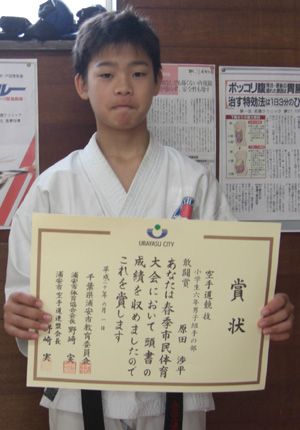 小学生6年男子組手の部で敢闘賞の原田渉平選手!!