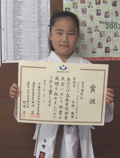 小学生3・4年女子有級形の部で敢闘賞の今野優華選手!!