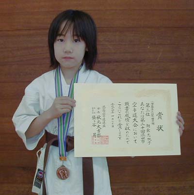 小学生高学年女子組手の部で敢闘賞の藤崎はづき選手!!