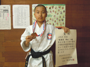 小学生高学年男子組手の部で敢闘賞の安生晴紀選手!!