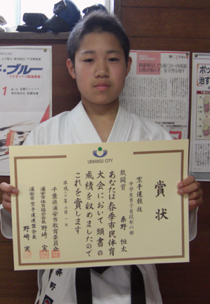 020506第7回千葉県中学生空手道選手権大会男子形で敢闘賞の中西秀爾選手!!