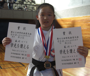 小学生高学年女子形の部、組手の部共第3位の藤崎はづき選手!!