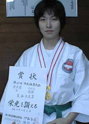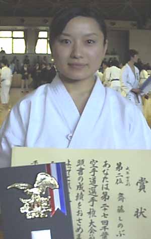 戸村友紀は一般女子組手で準優勝、形で敢闘賞。
