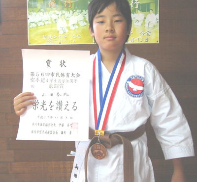小学生高学年男子形の部で敢闘賞の山田春風選手!!