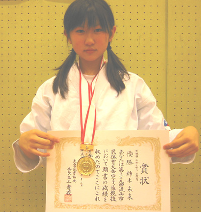 051113 流山市立総合体育館にて開催された第39回流山市民体育大会空手道競技大会に於いて中学生女子形の部で柿木未来選手が優勝!!大活躍でした。