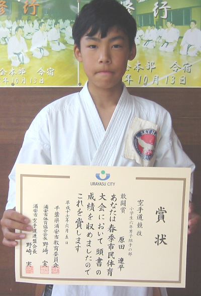 小学生6年男子組手の部で敢闘賞の原田遼平選手!!