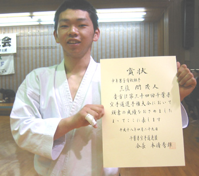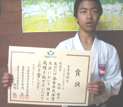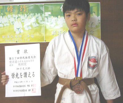 中学生男子有級形の部で敢闘賞の高田蒔夫選手!!