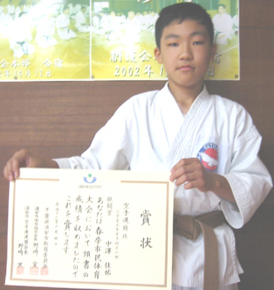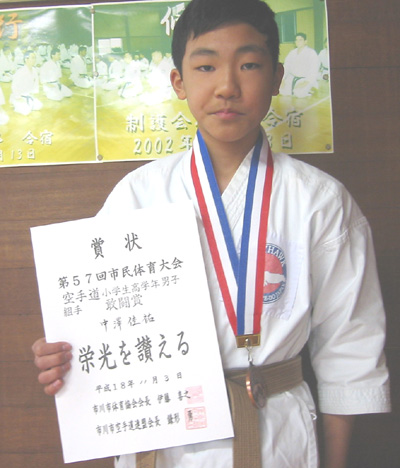 小学生5年男子組手の部で敢闘賞の中澤佳祐選手!!