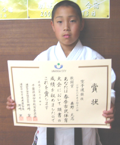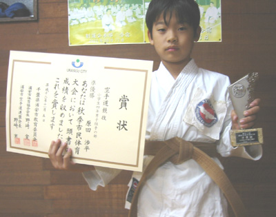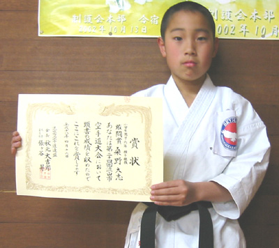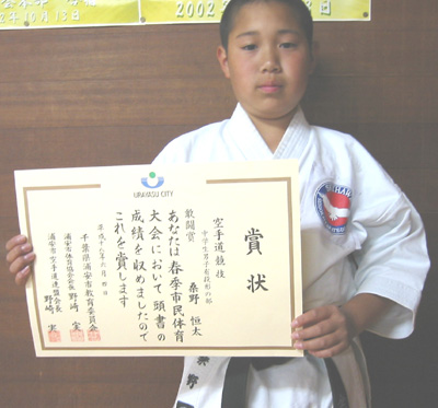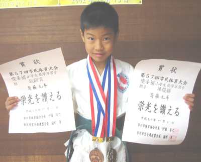 小学6年男子組手の部で敢闘賞の桑野丈志選手!!