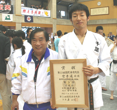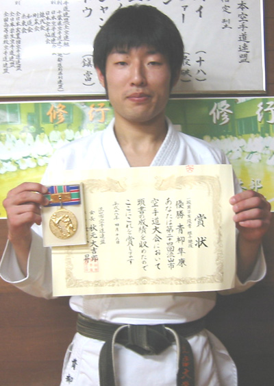 061001-03兵庫県豊岡市にて開催された大会で成年男子組手個人戦中量級の部で青柳隼康選手が第3位と大活躍!!