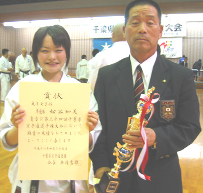 成年女子形の部で準優勝の松谷知美選手と張ヶ谷副理事長!!