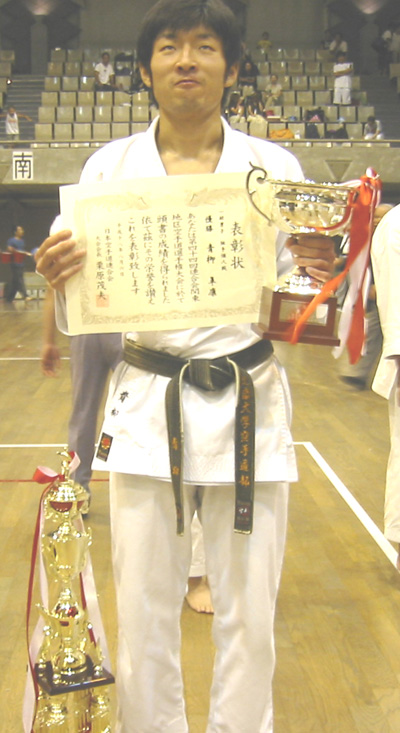 060806 東京武道館にて開催された大会で制護会大活躍!!成年男子組手の部で青柳隼康選手が優勝!成年女子形の部で松谷知美選手が優勝!成年女子組手の部で橋本由美子選手が準優勝!成年男子組手の部で優秀選手に選ばれた安田昇司選手と大活躍でした。