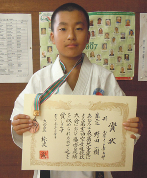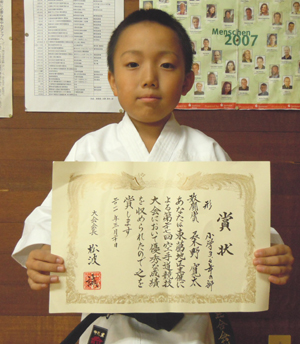 2011/0529/千葉県武道館にて開催されました第11回千葉県小学生空手道選手権大会に於いて野田夏末選手が小学2年女子形の部で準優勝、小学2年女子組手の部で敢闘賞、桑野寛太選手が小学4年男子形の部で第3位、今野優華選手が小学4年女子組手の部で敢闘賞、野田一樹選手が小学6年男子形の部で敢闘賞と大活躍でした。